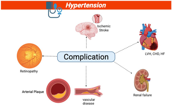 Some of the complications that could arise due to hypertension are presented in Figure 1.