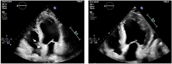 During the acute phase, TTE is important for assessing global cardiac function, through the left ventricular (LV) ejection fraction (EF). However, findings may be normal or slightly abnormal, such as hypokinesia, subendocardial hyperechogenicity, chamber dilation or increased wall thickness (pseudohypertrophy) [] (Figure 2).