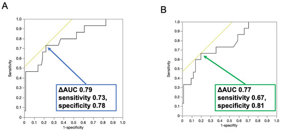 Continuous variables were expressed as mean ± standard deviation, and categorical variables in numbers and percentages. Welch’s t-test was used for continuous variables, and Fisher’s exact test was used for categorical variables. Patient backgrounds were compared between patients with and without MACE. To identify significant predictors of MACE, univariable and multivariable Cox proportional hazards analyses were performed. Variables for multivariable analysis were selected using a stepwise method, adhering to a minimum of 5 (ideally 10) events per variable to avoid overfitting, as previously described [23,24]. Receiver operating characteristic (ROC) analysis was employed to determine optimal cut-off values for predicting MACE and evaluate their prognostic utility. Survival analysis was also performed to evaluate the prognostic predictive ability of the determined cut-off value. All statistical tests were two-sided, with a p-value < 0.05 considered statistically significant.
