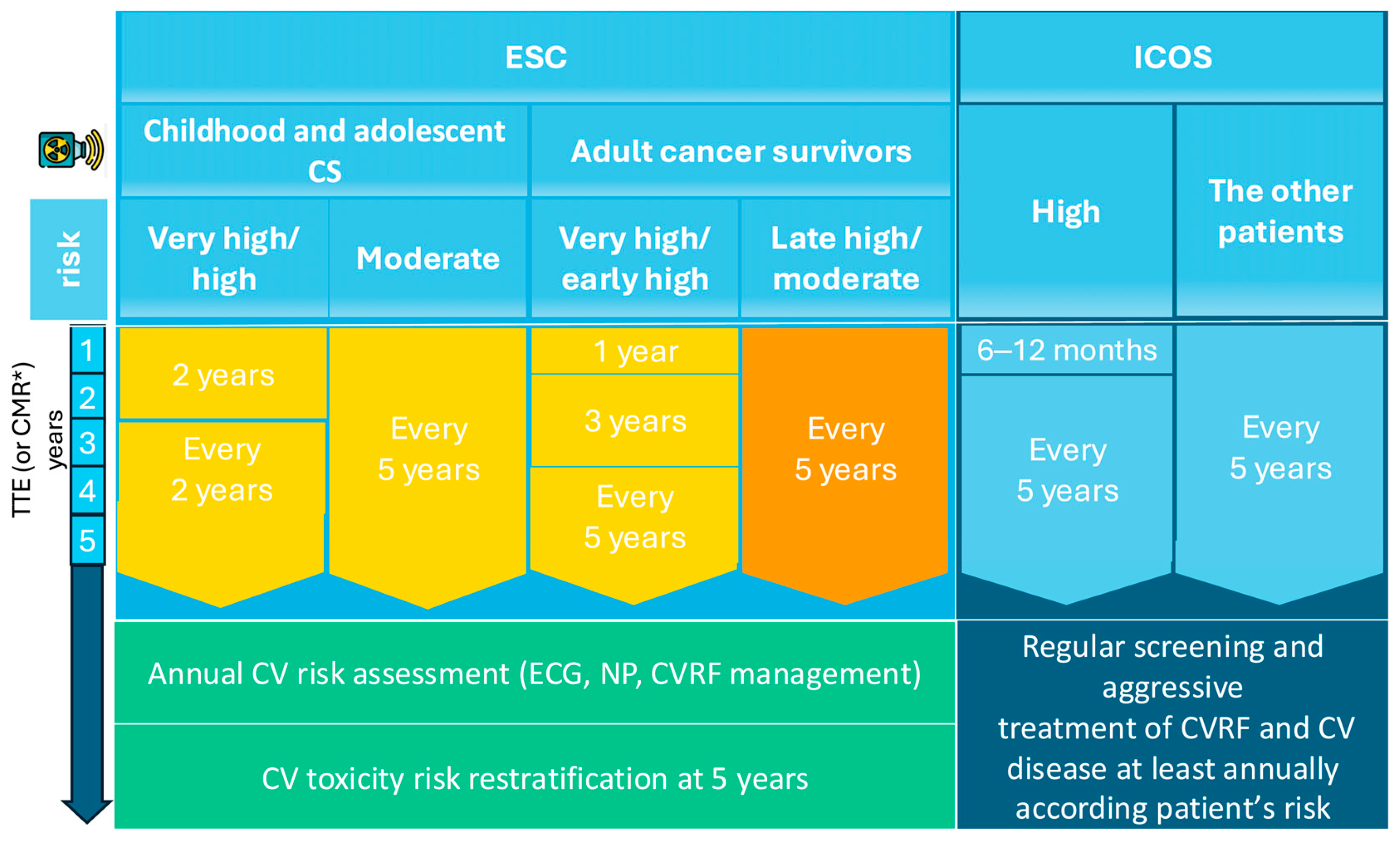 - Lestuzzi, C.; Mascarin, M.; Coassin, E.; Canale, M.L.; Turazza, F. Cardiologic Long-Term Follow-Up of Patients Treated With Chest Radiotherapy: When and How? Front. Cardiovasc. Med. 2021, 8, 671001. [Google Scholar] [CrossRef]