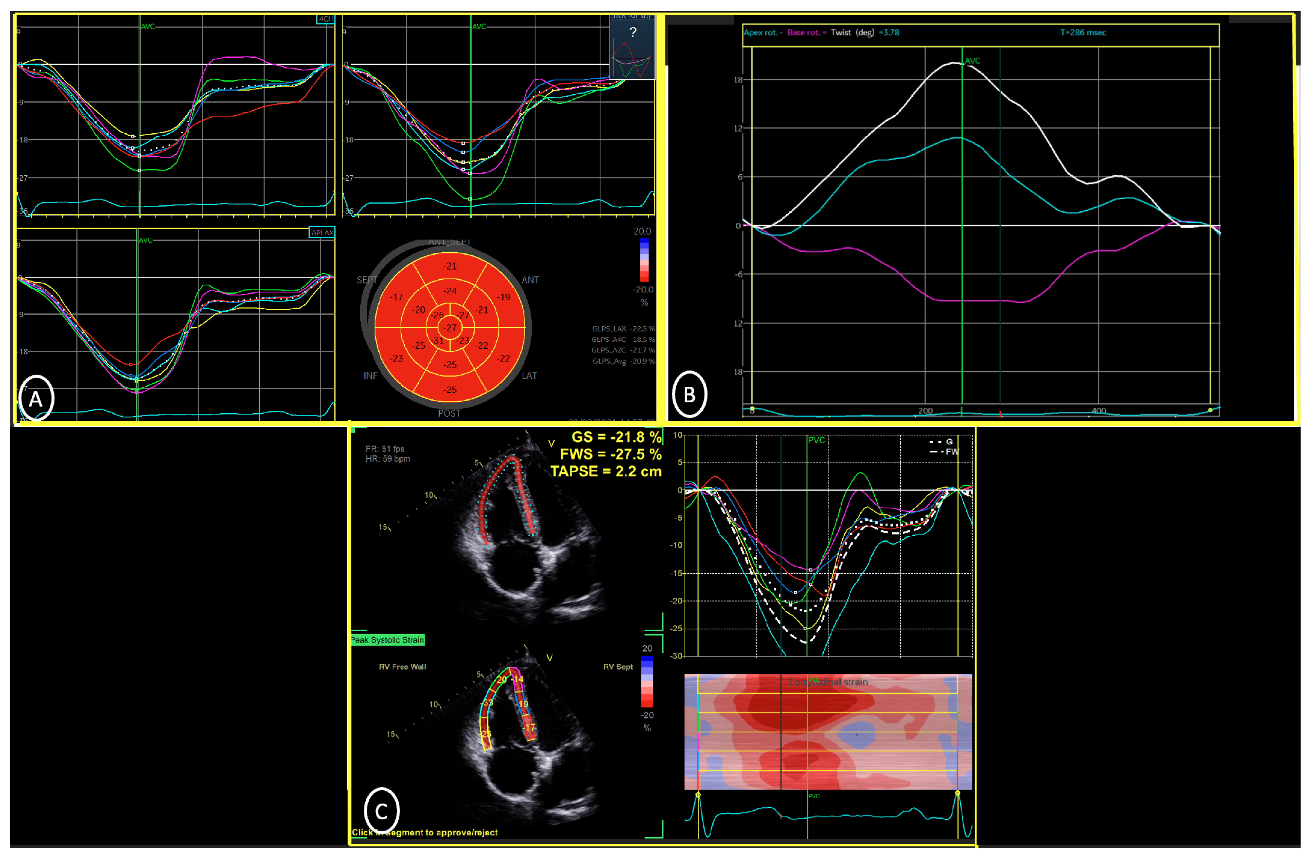 3.2. Two-Dimensional and Speckle-Tracking Echocardiography