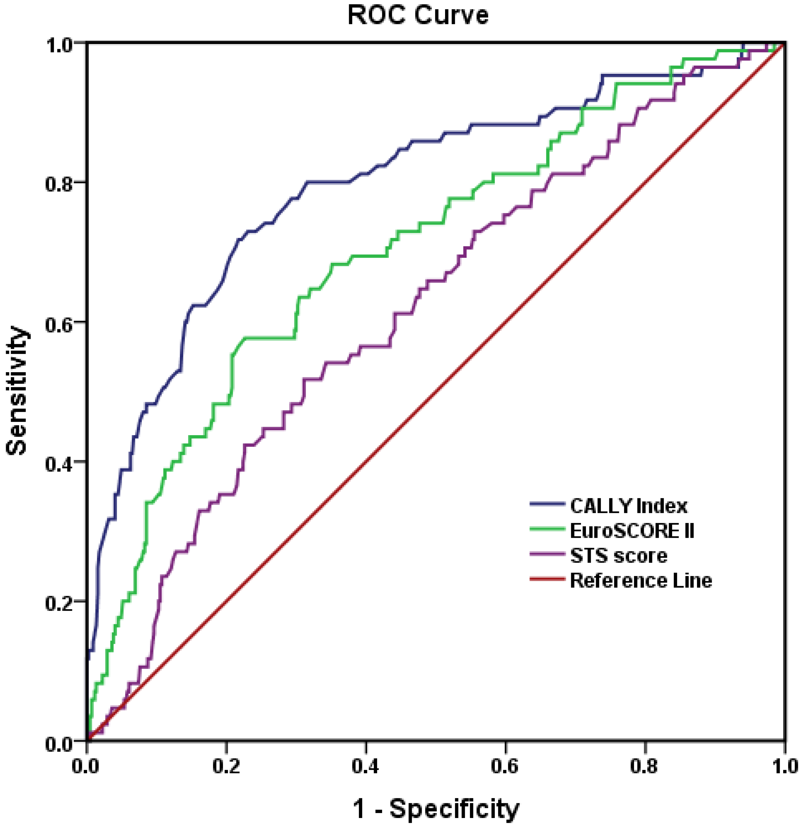 | EuroSCORE II | 0.705 (0.643–0.767) | <0.001 | 11.27 | 0.637 | 0.765 | 32.7 | 90.6 |