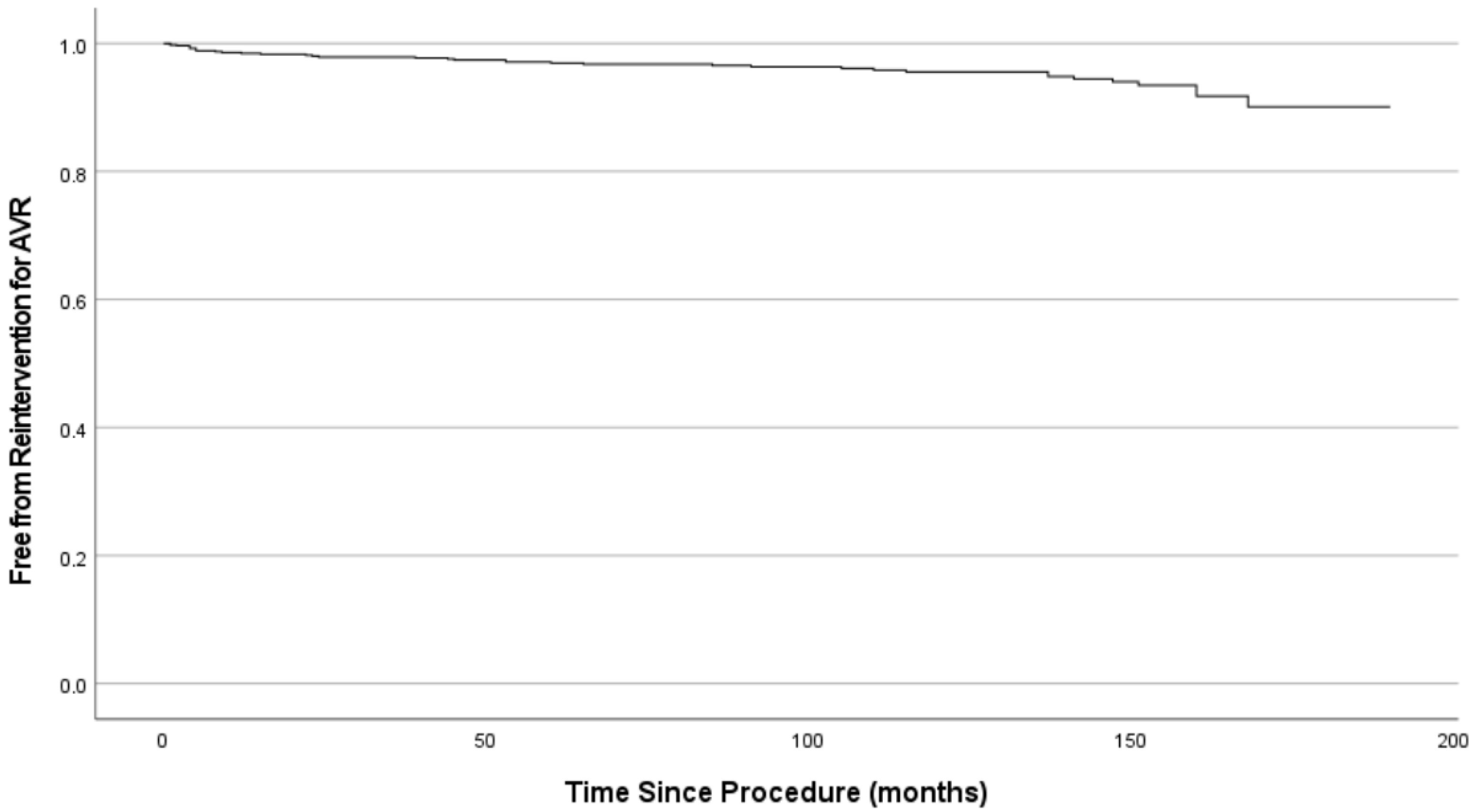 - Sathananthan, J.; Lauck, S.; Polderman, J.; Yu, M.; Stephenson, A.; Sathananthan, G.; Moss, R.; Cheung, A.; Ye, J.; Blanke, P.; et al. Ten-year follow-up of high-risk patients treated during the early experience with transcatheter aortic valve replacement. Catheter. Cardiovasc. Interv. 2021, 97, E431–E437. [Google Scholar] [CrossRef] [PubMed]