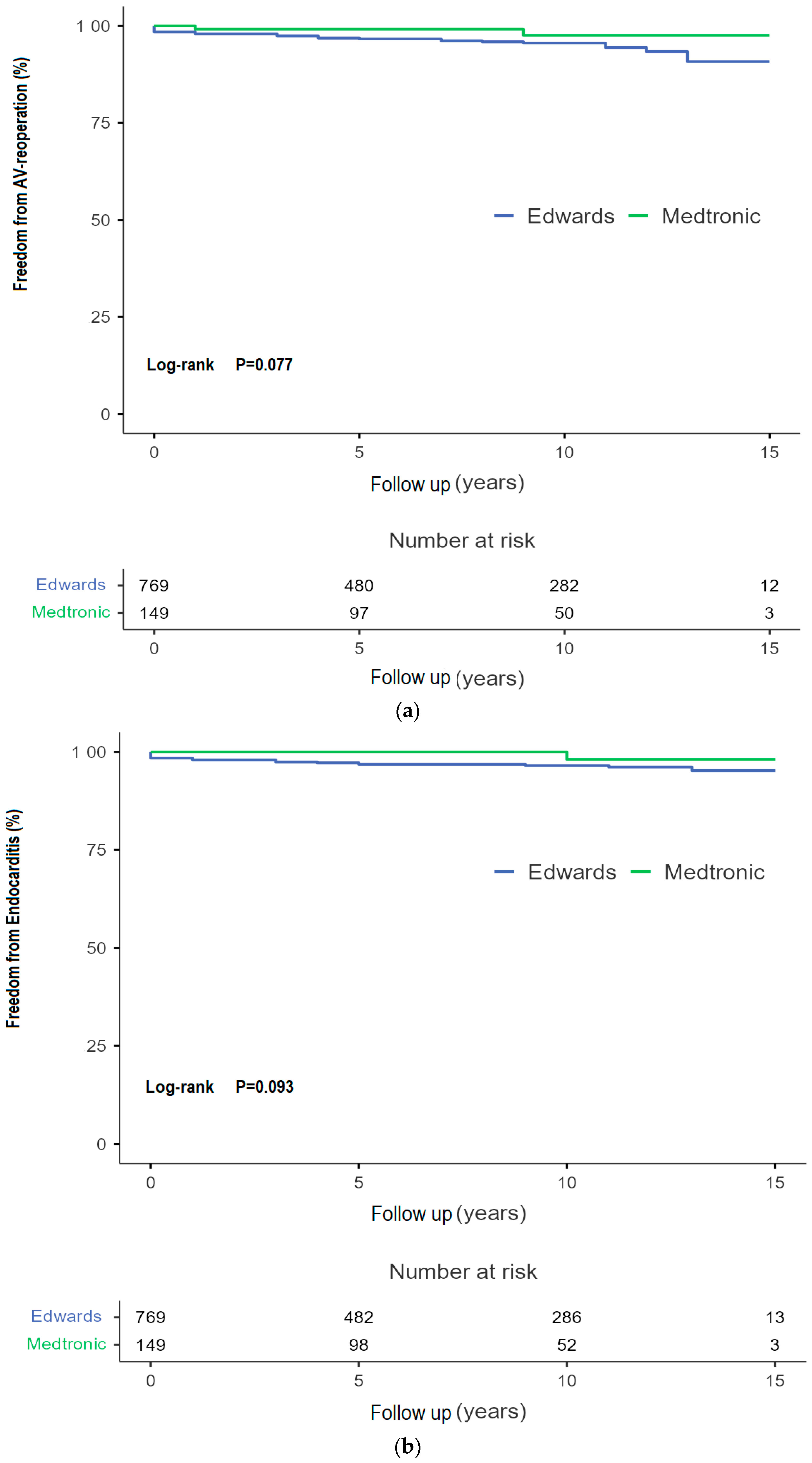 - Andreas, M.; Wallner, S.; Ruetzler, K.; Wiedemann, D.; Ehrlich, M.; Heinze, G.; Binder, T.; Moritz, A.; Hiesmayr, M.J.; Kocher, A.; et al. Comparable long-term results for porcine and pericardial prostheses after isolated aortic valve replacement. Eur. J. Cardio-Thorac. Surg. 2015, 48, 557–561. [Google Scholar] [CrossRef] [PubMed] [PubMed Central]