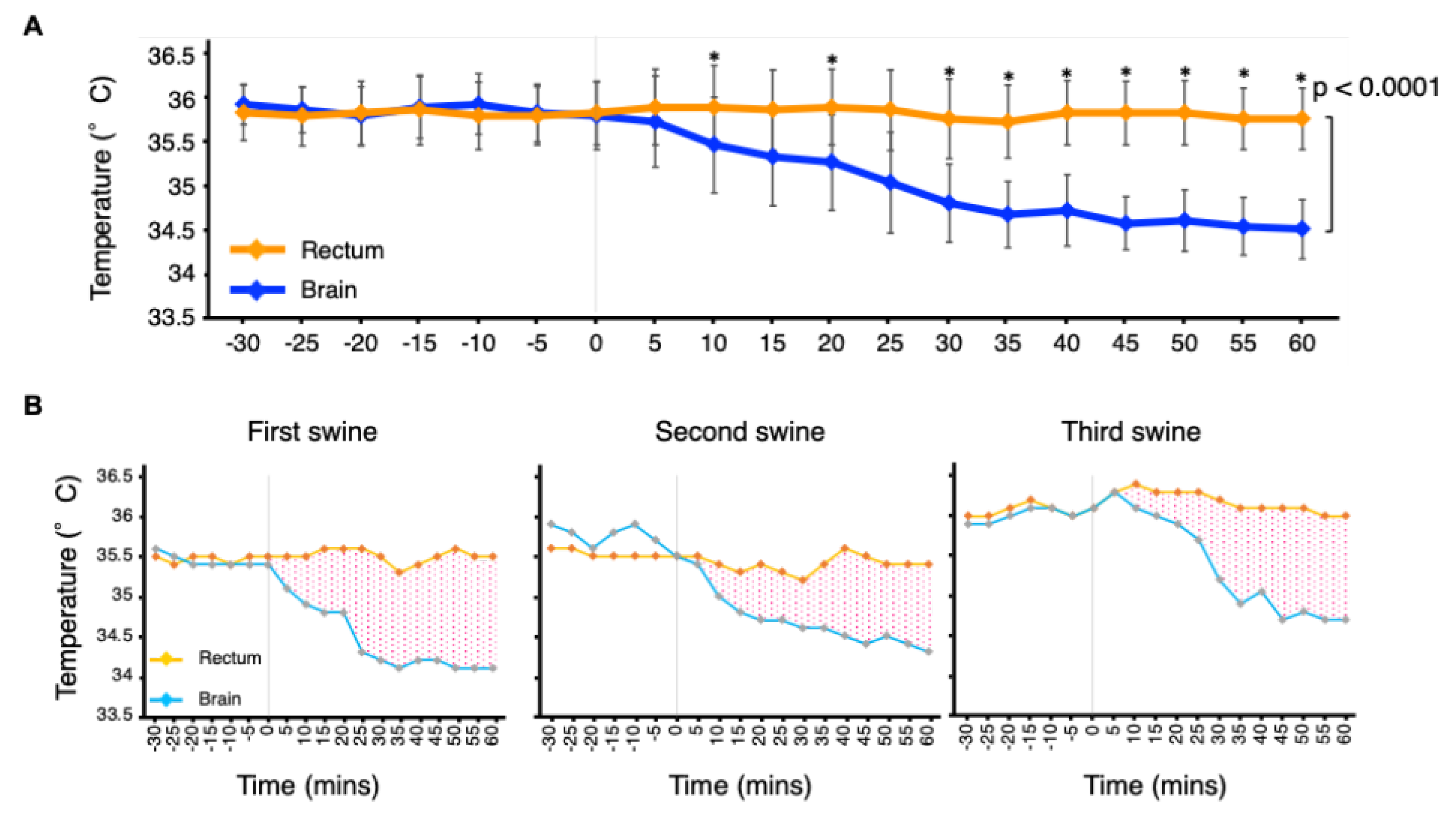 | Brain temperature, °C | 35.6 | 35.9 | 36.4 |