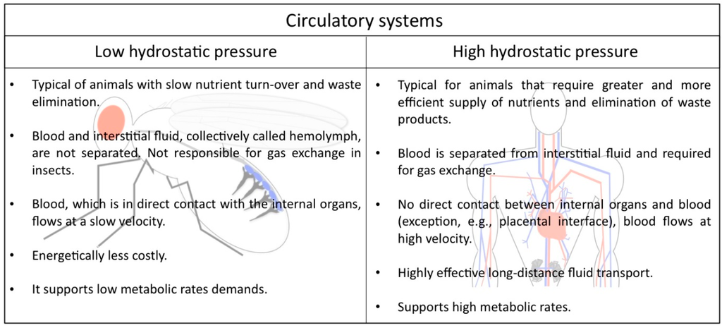 2. Low and High Hydrostatic Pressure Circulatory Systems: The Main Difference between Insects and Mammals