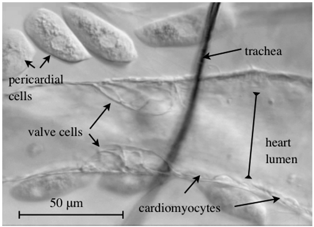 In recent years, numerous papers have been published emphasizing the adult heart of Drosophila as an excellent human disease model by which to study, e.g., the principles of arrhythmia [78], cardiac aging [79] or obesity [80,81], to name but a few. In the Drosophila heart model, it is possible to manipulate cell specification, cell differentiation, organ architecture, heart physiology, etc., in order to study the consequences of such manipulations in a living animal. It has been demonstrated that even severe malformation or malfunction of the cardiac system does not necessarily lead to the animal′s death, at least under laboratory animal husbandry conditions [64,82,83]. This allow researchers to study aspects of heart differentiation, heart organogenesis and heart performance, which are not accessible at all in other animal models due to the fact that genetic or pharmaceutical manipulations often cause early lethality, e.g., in mammals. In this paper, we have presented a short overview of the histology and anatomy of the Drosophila heart, with a focus on larval and adult tissue.