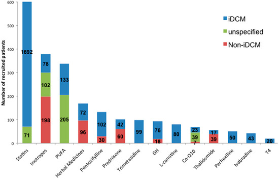 In conclusion, the present study highlights putative therapeutic targets that can be employed for the treatment of iDCM based on previous clinical trials. This goal can be reached through several efforts. As adviced by Bierer, data authorship policies can be a future incentive for data sharing by promoting the generation of a larger database merging past clinical studies’ results [85]. In addition, future studies are encouraged to be multricentric and multimodal in light of the specific phenotype of iDCM and the urge to assess drug effectiveness at cell, tissue, and whole organ levels. Furthermore, in the era of precision medicine, the use of new algorithms based on novel prognostic biomarkers will help clinicians to tailor the most suitable therapy for such a heterogenous population. Lastly, the identification of molecular targets can lead to drug repurposing and the development of new ones in the near future. By adopting these solutions, medicine will replenish its pharmacological armamentarium in the war against heart failure [86].