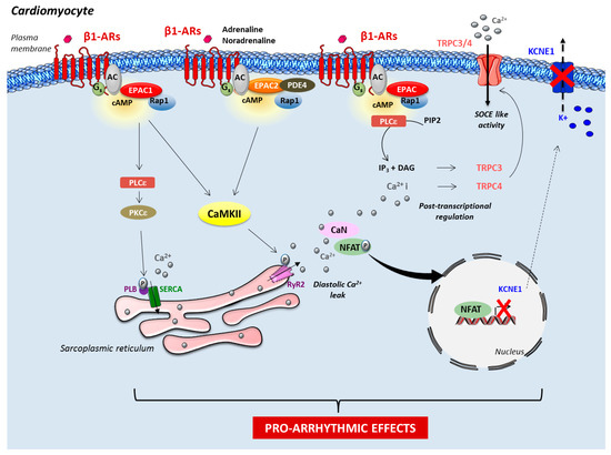 - Pereira, L.; Cheng, H.; Lao, D.H.; Na, L.; van Oort, R.J.; Brown, J.H.; Wehrens, X.H.T.; Chen, J.; Bers, D.M. Epac2 mediates cardiac β1-adrenergic-dependent sarcoplasmic reticulum Ca2+ leak and arrhythmia. Circulation 2013, 127, 913–922. [Google Scholar] [CrossRef] [PubMed]