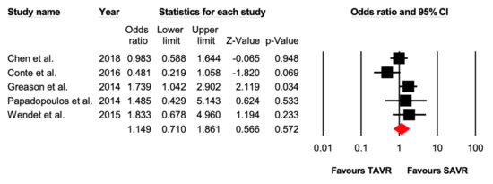 The following are available online at https://www.mdpi.com/2308-3425/7/3/36/s1, Figure S1: Forest plot comparing the risk of acute kidney injury between transcatheter versus surgical aortic valve replacement; Figure S2: Forest plot comparing the procedural time between transcatheter versus surgical aortic valve replacement.