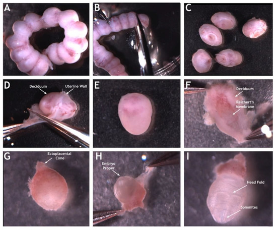 - Nagy, A.; Gertsenstein, M.; Vintersten, K.; Behringer, R. Roller Culture of Postimplantation Embryos. Cold Spring Harb. Protoc. 2006, 2006, pdb-prot4371. [Google Scholar] [CrossRef] [PubMed]