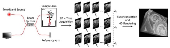 - Larina, I.V.; Larin, K.V.; Dickinson, M.E.; Liebling, M. Sequential Turning Acquisition and Reconstruction (STAR) method for four-dimensional imaging of cyclically moving structures. Biomed. Opt. Express 2012, 3, 650–660. [Google Scholar] [CrossRef]