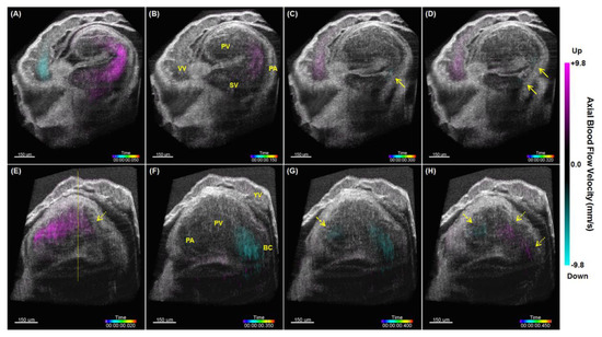 - Wang, S.; Lakomy, D.S.; Garcia, M.D.; Lopez, A.L.; Larin, K.V.; Larina, I.V. Four-dimensional live imaging of hemodynamics in mammalian embryonic heart with Doppler optical coherence tomography. J. Biophotonics 2016, 9, 837–847. [Google Scholar] [CrossRef]