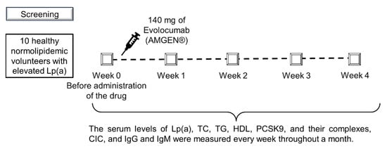 The aim of this study was to investigate the influence of a single injection of Evolocumab on the dynamics of Lp(a), PCSK9, and their complex in healthy volunteers with elevated Lp(a).