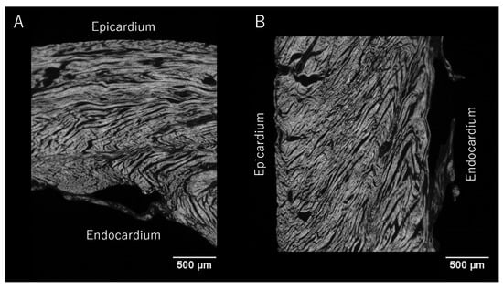 - Pope, A.J.; Sands, G.B.; Smaill, B.H.; LeGrice, I.J. Three-dimensional transmural organization of perimysial collagen in the heart. Am. J. Physiol. Circ. Physiol. 2008, 295, H1243–H1252. [Google Scholar] [CrossRef]