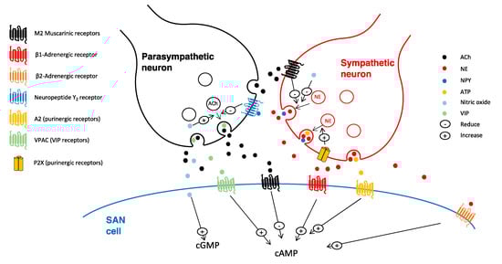 - Herring, N. Autonomic control of the heart: Going beyond the classical neurotransmitters. Exp. Physiol. 2014, 100, 354–358. [Google Scholar] [CrossRef] [PubMed]