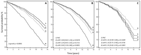 3.4. Multivariable Analysis: Relationship between Atrial Fibrillation and Other Prognostic Variables over a Long-Term Follow-Up