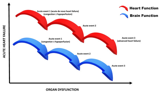 AHF can lead to dysfunction, injury, and eventually failure of many vital organs, which in turn contributes to further increase in the observed mortality. The brain represents one of the target organs involved in this process [10]. The heart and the brain are closely linked and interact bidirectionally through numerous feedback pathways [11]. Owing to the complex pathophysiological interplay between the heart and the brain, the notion of the cardiocerebral syndrome in HF has emanated, along the lines of the cardiorenal and the cardiohepatic syndrome [12].
