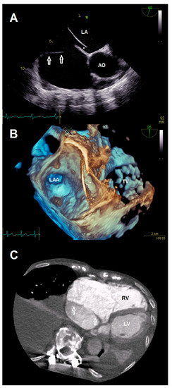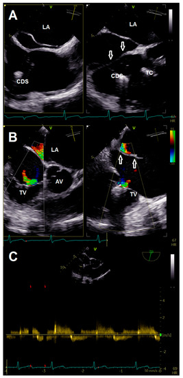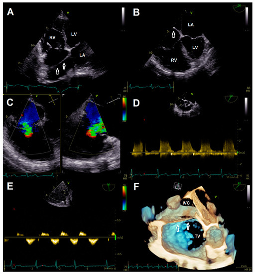 - Gold, B.M.; Parekh, D.R.; Kearney, D.L.; Silva, G.V.; Fish, R.D.; Stainback, R.F. Forme Fruste Cor Triatriatum Dexter by Transesophageal Echocardiography and Its Impact on Percutaneous Heart Procedures: A Case Series. Cardiovasc. Imaging Case Rep. 2019, 3, 189–199. [Google Scholar] [CrossRef] [PubMed]