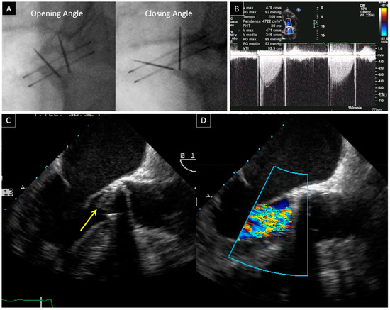 - Muratori, M.; Montorsi, P.; Maffessanti, F.; Teruzzi, G.; Zoghbi, W.A.; Gripari, P.; Tamborini, G.; Ghulam Ali, S.; Fusini, L.; Fiorentini, C.; et al. Dysfunction of bileaflet aortic prosthesis: Accuracy of echocardiography versus fluoroscopy. JACC Cardiovasc. Imaging 2013, 6, 196–205. [Google Scholar] [CrossRef] [Green Version]