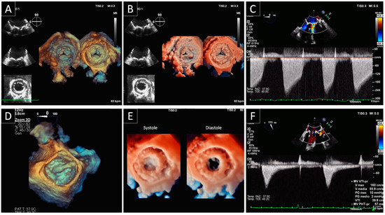 - Kronzon, I.; Sugeng, L.; Perk, G.; Hirsh, D.; Weinert, L.; Garcia Fernandez, M.A.; Lang, R.M. Real-time 3-dimensional transesophageal echocardiography in the evaluation of post-operative mitral annuloplasty ring and prosthetic valve dehiscence. J. Am. Coll. Cardiol. 2009, 53, 1543–1547. [Google Scholar] [CrossRef] [PubMed] [Green Version]
