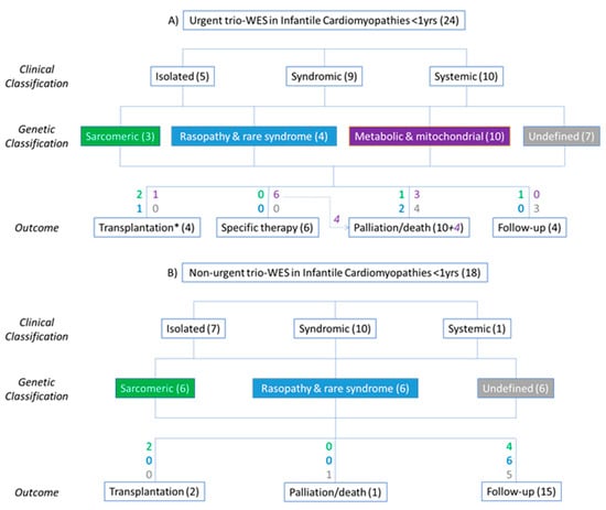 - Ritter, A.; Bedoukian, E.; Berger, J.H.; Copenheaver, D.; Gray, C.; Krantz, I.; Izumi, K.; Juusola, J.; Leonard, J.; Lin, K.; et al. Clinical utility of exome sequencing in infantile heart failure. Genet. Med. 2019, 22, 423–426. [Google Scholar] [CrossRef]