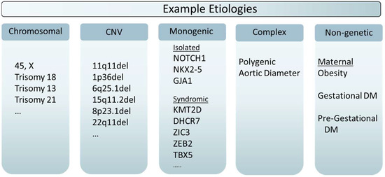 - Boskovski, M.T.; Homsy, J.; Nathan, M.; Sleeper, L.A.; Morton, S.; Manheimer, K.B.; Tai, A.; Gorham, J.; Lewis, M.; Swartz, M.; et al. De Novo Damaging Variants, Clinical Phenotypes, and Post-Operative Outcomes in Congenital Heart Disease. Circ. Genom. Precis. Med. 2020, 13, e002836. [Google Scholar] [CrossRef]