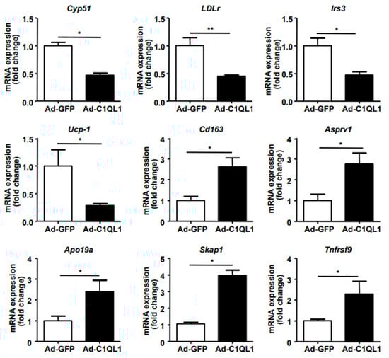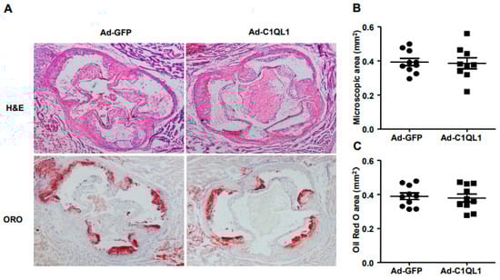 3.3. Increased Production of C1QL1 Did Not Affect the Formation of Atherosclerosis