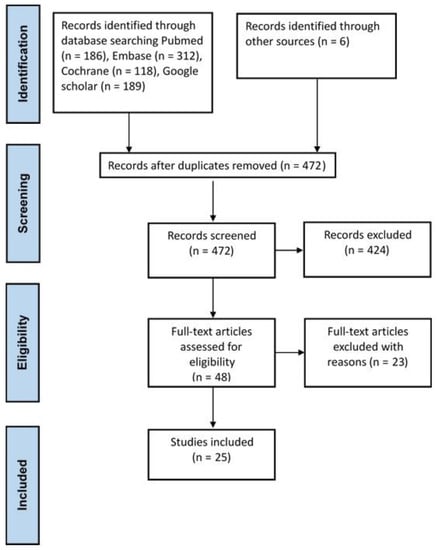 The syntax used in the database searches is detailed in the Supplementary Information (Table S1). Duplicate articles from different databases were excluded. The selection process is illustrated in Figure 1. All search records from all databases were downloaded and merged into Endnote.