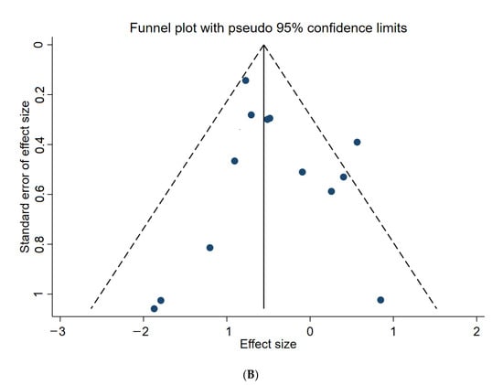 - Egger, M.; Davey Smith, G.; Schneider, M.; Minder, C. Bias in meta-analysis detected by a simple, graphical test. BMJ 1997, 315, 629–634. [Google Scholar] [CrossRef]