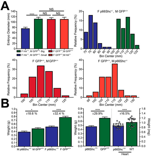 3.2. p66Shc Hypomorphic Allele Alters Embryo Diameter and Adult Zebrafish Mass