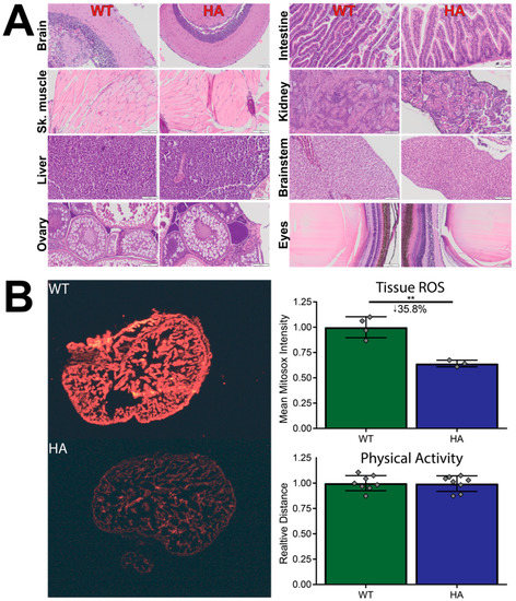 3.3. p66Shc Hypomorphic Allele Zebrafish Have Normal Organ Histology and Physical Activity but Decreased Tissue ROS Fluorescence