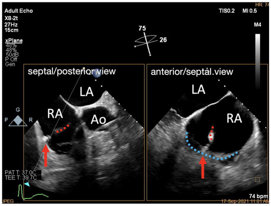 - Hahn, R.T.; Saric, M.; Faletra, F.F.; Garg, R.; Gillam, L.D.; Horton, K.; Khalique, O.K.; Little, S.H.; Mackensen, G.B.; Oh, J.; et al. Recommended Standards for the Performance of Transesophageal Echocardiographic Screening for Structural Heart Intervention: From the American Society of Echocardiography. J. Am. Soc. Echocardiogr. 2022, 35, 1–76. [Google Scholar] [CrossRef]