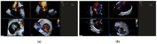 - Zoghbi, W.A.; Asch, F.M.; Bruce, C.; Gillam, L.D.; Grayburn, P.A.; Hahn, R.T.; Inglessis, I.; Islam, A.M.; Lerakis, S.; Little, S.H.; et al. Guidelines for the Evaluation of Valvular Regurgitation After Percutaneous Valve Repair or Replacement: A Report from the American Society of Echocardiography Developed in Collaboration with the Society for Cardiovascular Angiography and Interventions, Japanese Society of Echocardiography, and Society for Cardiovascular Magnetic Resonance. J. Am. Soc. Echocardiogr. 2019, 32, 431–475. [Google Scholar] [CrossRef]