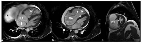 - Rajiah, P.; MacNamara, J.; Chaturvedi, A.; Ashwath, R.; Fulton, N.L.; Goerne, H. Bands in the Heart: Multimodality Imaging Review. RadioGraphics 2019, 39, 1238–1263. [Google Scholar] [CrossRef]