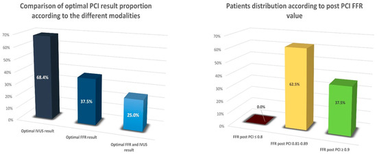Comparison of optimal PCI result proportion according to the different modalities used and patients’ distribution according to post-PCI FFR value.