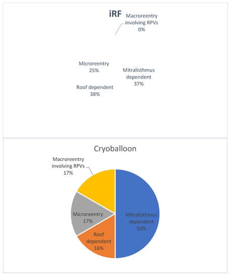- Wieczorek, M.; Sassani, K.; Hoeltgen, R. Comparison of pulmonary vein reconnection patterns after multielectrode phased radiofrequency- and cryoballoon ablation of atrial fibrillation. BMC Cardiovasc. Disord. 2020, 20, 1–9. [Google Scholar] [CrossRef] [PubMed] [Green Version]