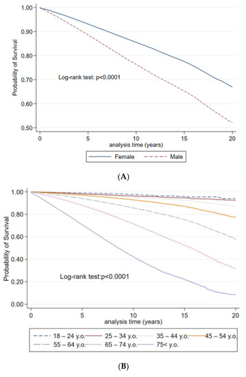 To estimate the risk of all-cause mortality among hypertensive patients, Cox proportional hazards regression analysis was used to obtain unadjusted and adjusted hazard ratios and their corresponding confidence intervals. The adjustments were made for age and sex, based on theoretical considerations and after checking its assumptions. p values are two-sided and reported as significant at <0.05 for all analyses. Data management and statistical analysis were performed using STATA 16.1 MP2 Version (STATA Corporation, College Station, TX, USA).