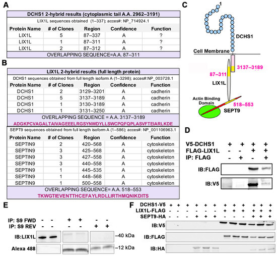 2.1. Identification of DCHS1-LIX1L-SEPT9 (DLS) Protein Complex