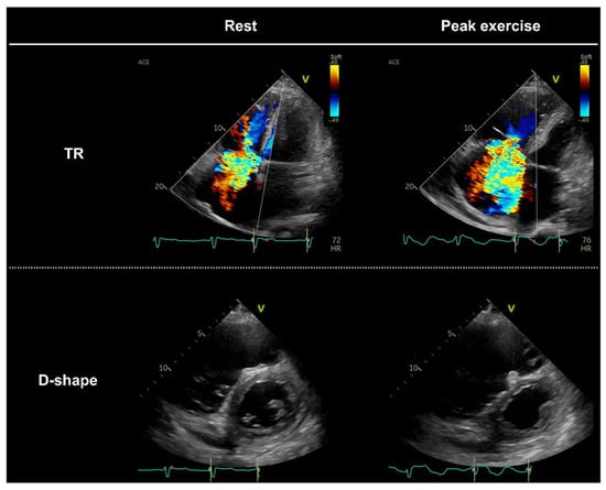 - Van Riel, A.C.M.J.; Opotowsky, A.R.; Santos, M.; Rivero, J.M.; Dhimitri, A.; Mulder, B.J.M.; Bouma, B.J.; Landzberg, M.J.; Waxman, A.B.; Systrom, D.M.; et al. Accuracy of Echocardiography to Estimate Pulmonary Artery Pressures with Exercise. Circ. Cardiovasc. Imaging 2017, 10, e005711. [Google Scholar] [CrossRef] [PubMed] [Green Version]