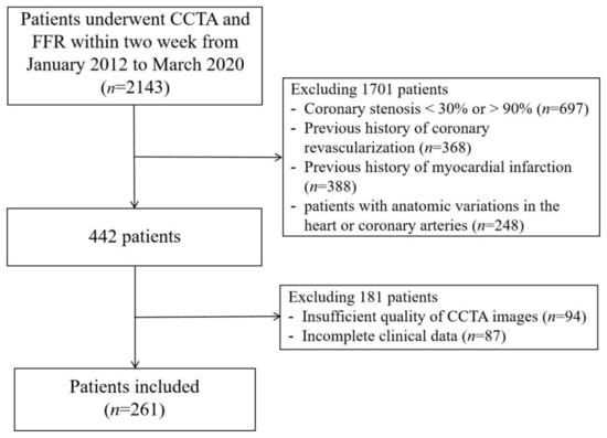 - Hoshino, M.; Yang, S.; Sugiyama, T.; Zhang, J.; Kanaji, Y.; Yamaguchi, M.; Hada, M.; Sumino, Y.; Horie, T.; Nogami, K.; et al. Peri-coronary inflammation is associated with findings on coronary computed tomography angiography and fractional flow reserve. J. Cardiovasc. Comput. Tomogr. 2020, 14, 483–489. [Google Scholar] [CrossRef]