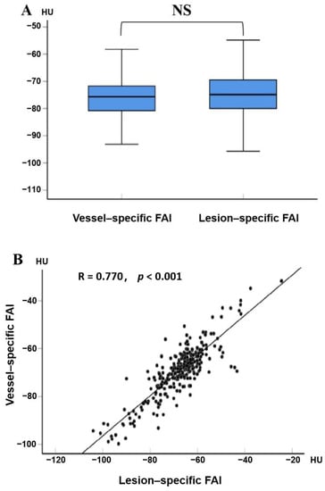 3.4. Relationship between Vessel-Specific FAI, Lesion-Specific FAI, and Coronary Stenosis