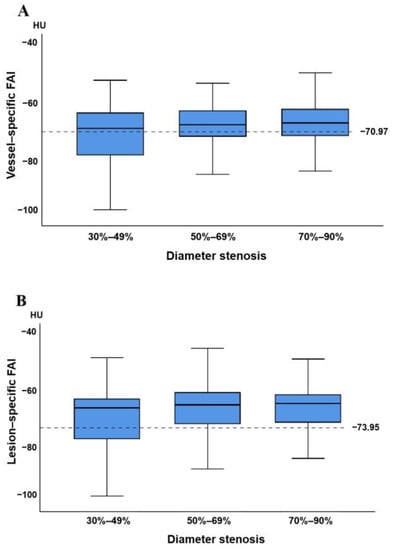 - Yu, M.; Dai, X.; Deng, J.; Lu, Z.; Shen, C.; Zhang, J. Diagnostic performance of perivascular fat attenuation index to predict hemodynamic signifi-cance of coronary stenosis: A preliminary coronary computed tomography angiography study. Eur. Radiol. 2020, 30, 673–681. [Google Scholar] [CrossRef]