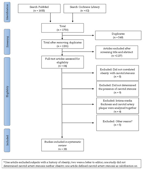 The oldest study included in this review included 477 patients who performed angiography or Doppler ultrasound and concluded that obesity was significantly more frequent in patients with internal artery occlusion or stenosis than in controls. Obesity was defined according to medical charts [5].