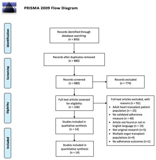 Studies were eligible if they outlined an aspect of immunosuppression adherence in HTx patients, including but not limited to measurements of adherence, outcomes associated with nonadherence, and strategies to improve adherence. Studies that included children and adolescent patients were eligible. Studies involving multiple types of solid-organ transplants were included, but the HTx cohort had to contain at least 10 participants and the HTx group data had to be separately reported. Included studies also utilized an objective or otherwise validated measure of adherence (e.g., drug levels or adherence questionnaires). Studies were excluded if adherence was measured with a non-validated measure (e.g., physician report). Studies could be a prospective, observational, cross-sectional survey, or randomized clinical trial.