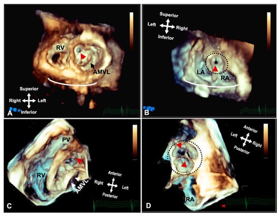 - Jone, P. Applications of three-dimensional transesophageal echocardiography in congenital heart disease. Echocardiography 2020, 37, 1665–1672. [Google Scholar] [CrossRef]