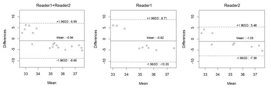 Results of intra-observer and inter-observer reproducibility analyses for the phantom study.
