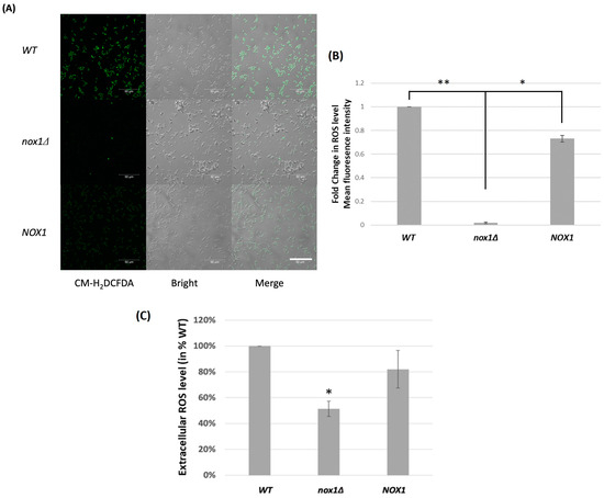 3.2. Role of CgNOX1 in C. glabrata ROS Production