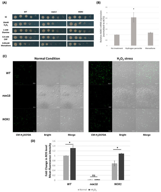 3.3. Role of CgNOX1 in the Oxidative Stress Response of C. glabrata