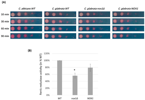 3.4. Role of CgNOX1 in C. glabrata Ferric Reductase Activity
